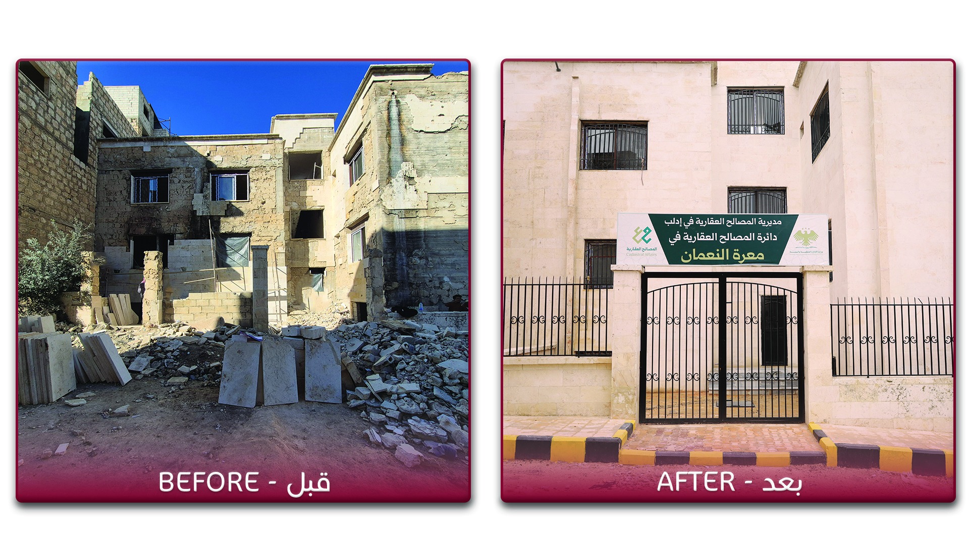 GOPA-DERD’s team implements restoration and rehabilitation project for the Real Estate Registry Building in Maaret al-Numan / Idlib.By / GOPA-DERD’s team implements restoration and rehabilitation project for the Real Estate Registry Building in Maaret al-Numan / Idlib.